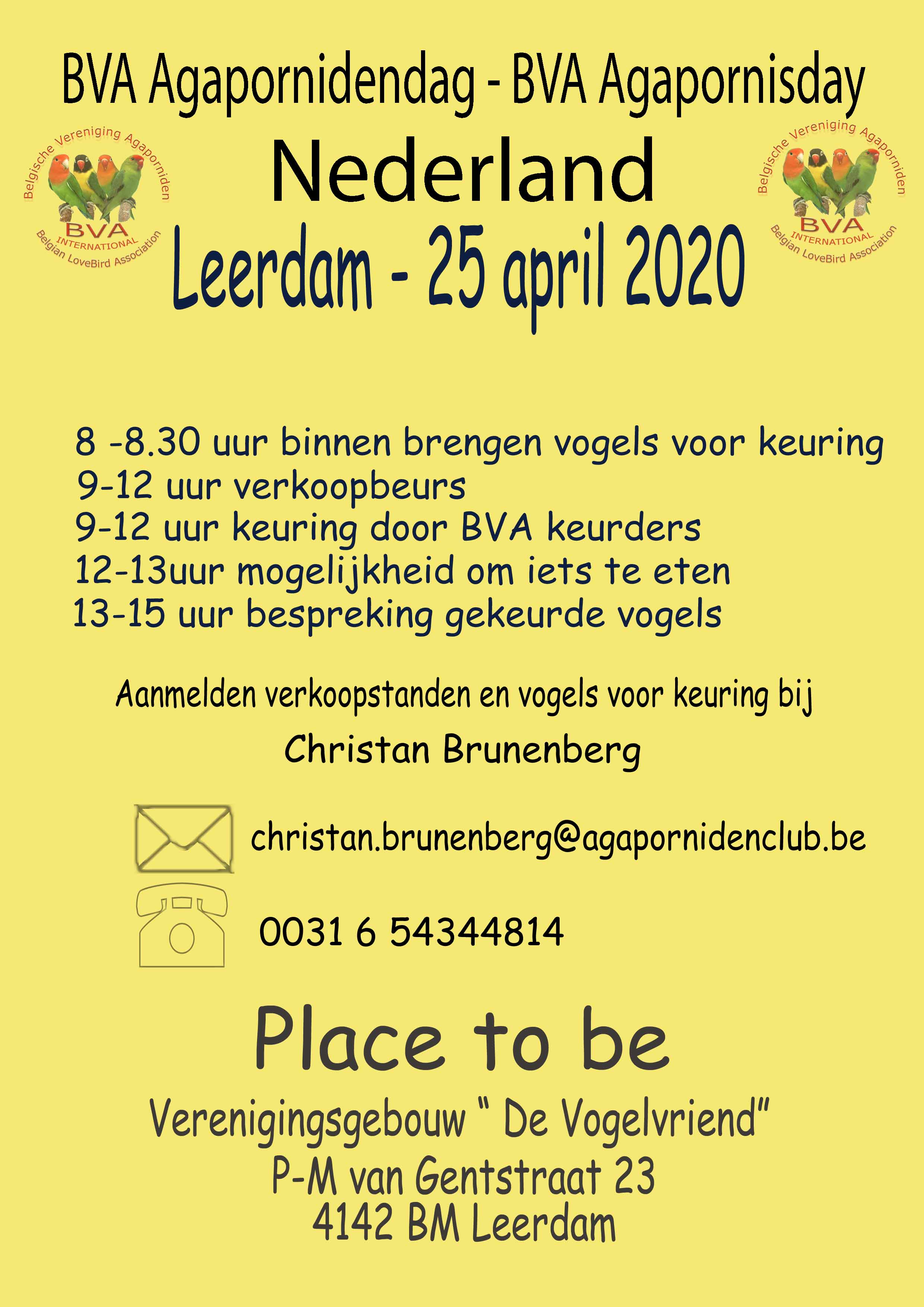 A BVA Lovebird Day will take place in Leerdam the Netherlands on the 25th April 2020.